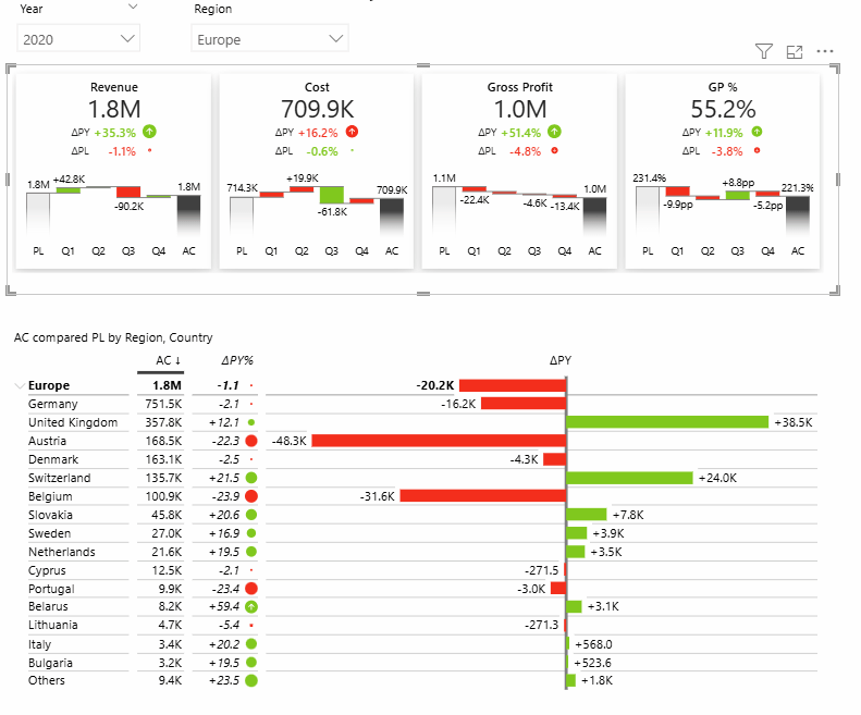 When a KPI like Cost or Expenses is selected (where positive variances have negative impact), you would want all visuals filtered by this KPI to invert their behavior automatically.