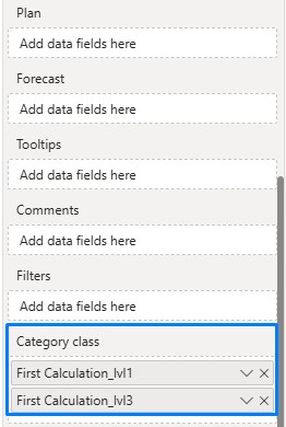 Once you have the definition columns ready, insert them into the Category Class bucket of the Zebra BI visual.