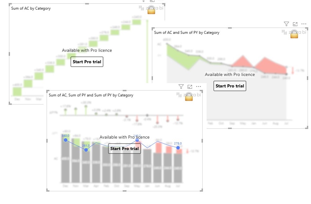The Zebra BI for Power BI license covers all three Power BI visuals: Tables, Charts, and Cards.