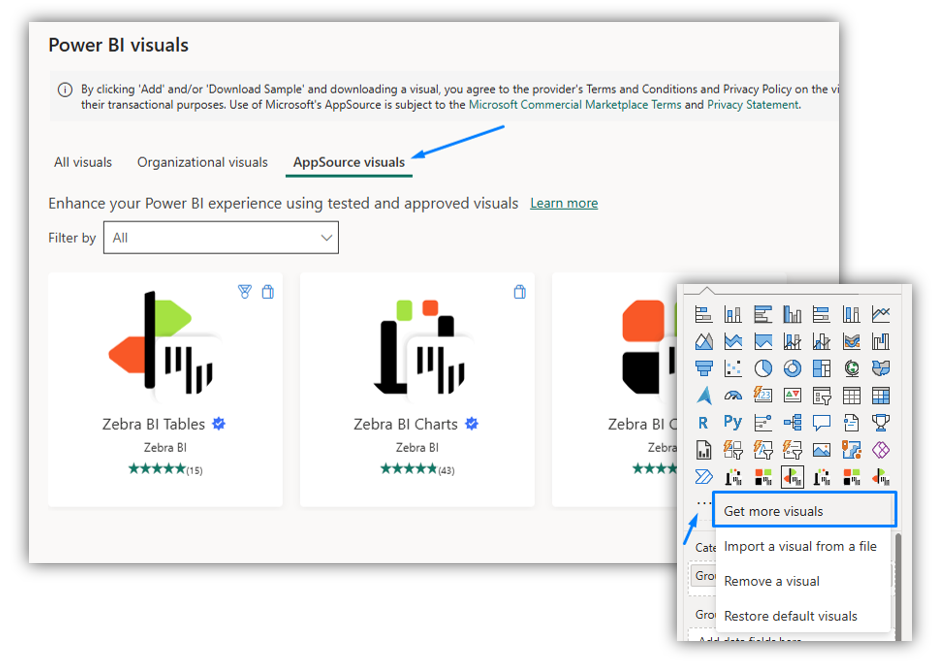 In this model, users download Zebra BI visuals directly from Microsoft AppSource.