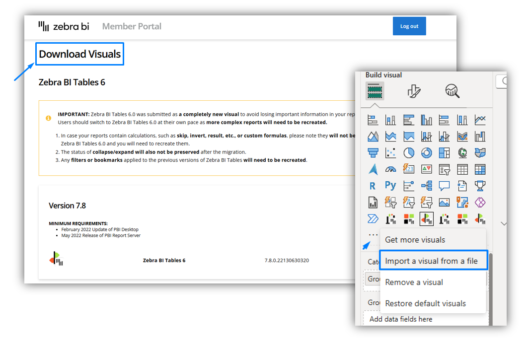 - Download embedded visuals from the Zebra BI Member Portal.
